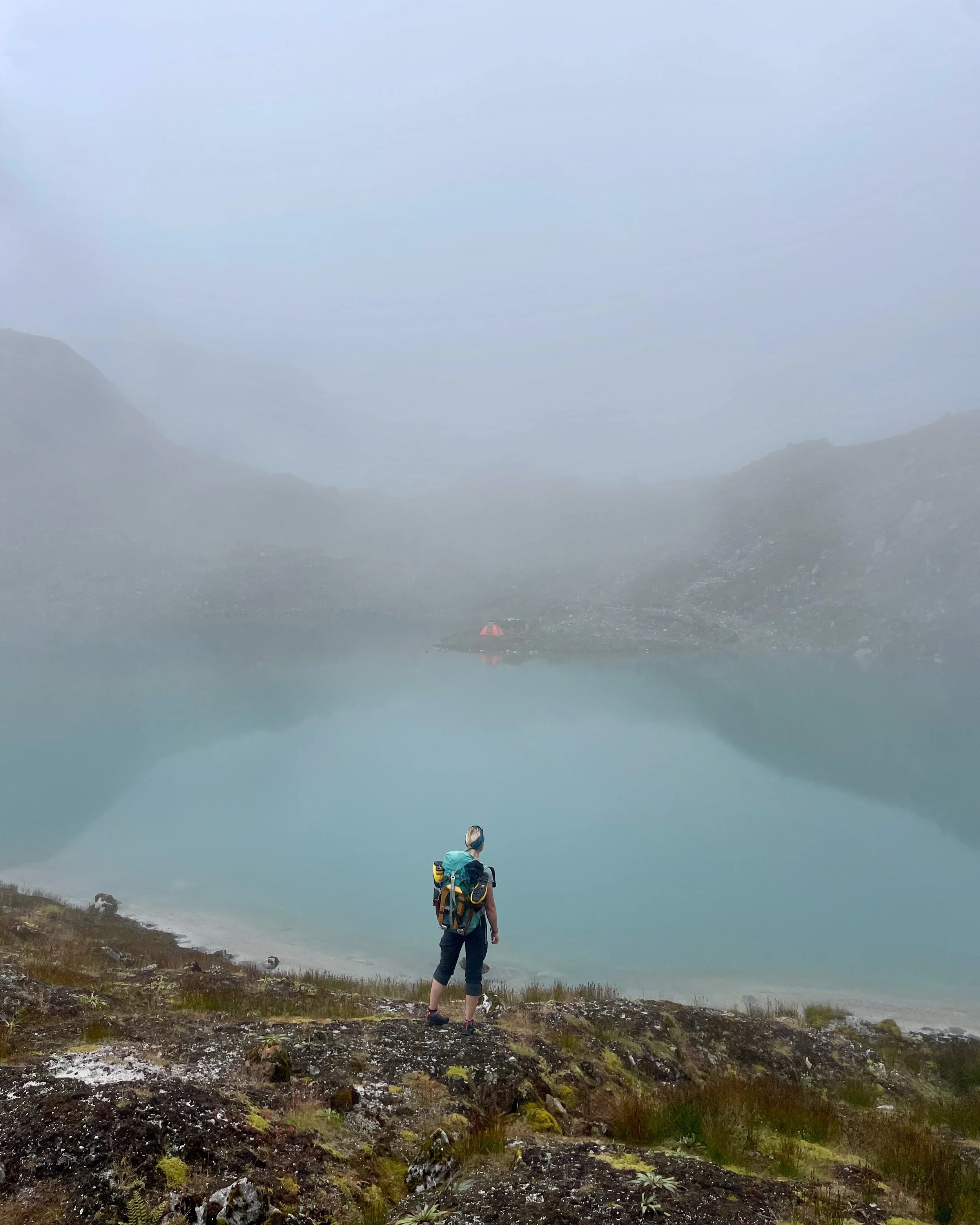 Glacial lakes loomed through the mist. Tom slid downhill on his snowshoes, whilst effectively towing me behind, my heavy pack pushing me down with every step. Punching through the crust. Mountain, forest, heathland, and river. Before long we are back at valley level and collapse into basecamp, to enjoy a welcoming cup of sweet Masala chai.